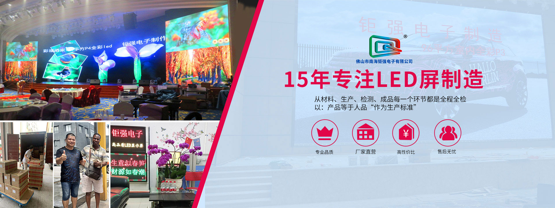佛山市南海鉅強(qiáng)電子有限公司是專(zhuān)業(yè)致力于LED顯示屏的研究、生產(chǎn)、銷(xiāo)售、工程服務(wù)的企業(yè)。主營(yíng)LED顯示產(chǎn)品:室內(nèi)小間距LED顯示屏、室內(nèi)全彩LED顯示屏、戶外全彩LED顯示屏、LED舞臺(tái)租賃屏、LED異形屏、排隊(duì)叫號(hào)屏、車(chē)間工業(yè)看板、并批發(fā)多種型號(hào)LED邊框鋁材及相關(guān)配件...